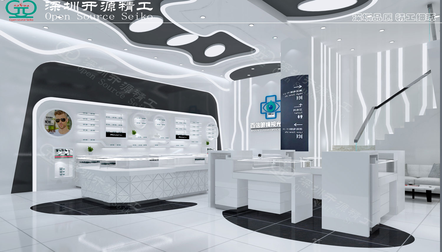 河南开源豪运装饰工程有限公司 眼镜店展柜设计、装修